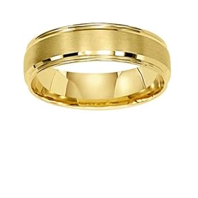 Style # 2G940811 Though the brushed finish of this rings center gives the appearance of being rough, it is truly smooth to the touch. Rather than offering a dull shine, as one would typically believe, the lines actually attract a good amount of light thanks to the way the brush finishes the surface, providing a gorgeous reflective quality. The contrasting high polish of the bands outer edges provides a sleek, updated look to this jewelry tradition. The 6mm wide band is made of 14k yellow gold.