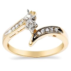 Amazon.com Product DescriptionTwo beautiful rings come together in this elegant diamond bridal set. Made from polished 10 karat yellow gold, the rings have a curvy bypass design decorated with round diamonds (1/5 cttw) in prong and channel settings. They fit together perfectly, creating a beautiful pattern of diamonds in marquise-shaped frames. This graceful style is very flattering on the finger.
